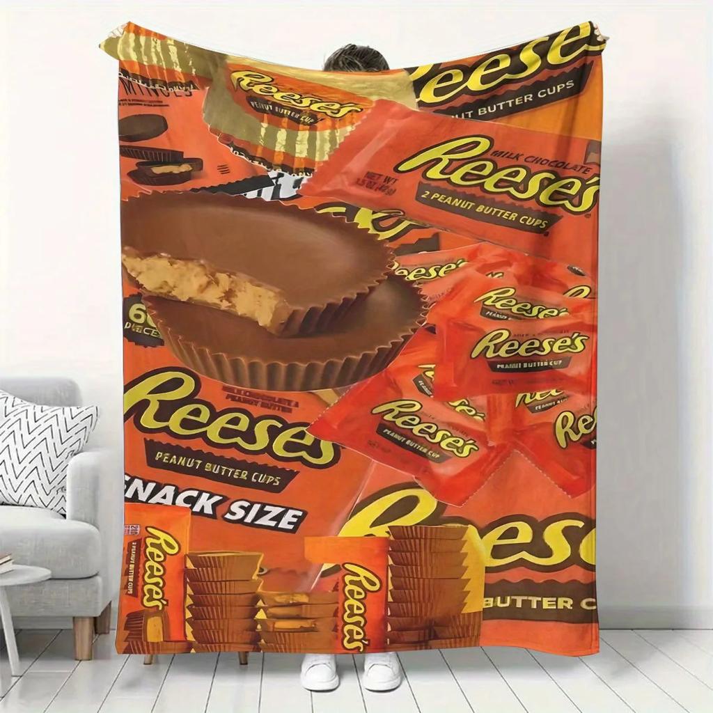 Плед Reese's Peanut Butter Cups - Сладкий дизайн конфет, идеально подходит для уюта на диване и декора спальни