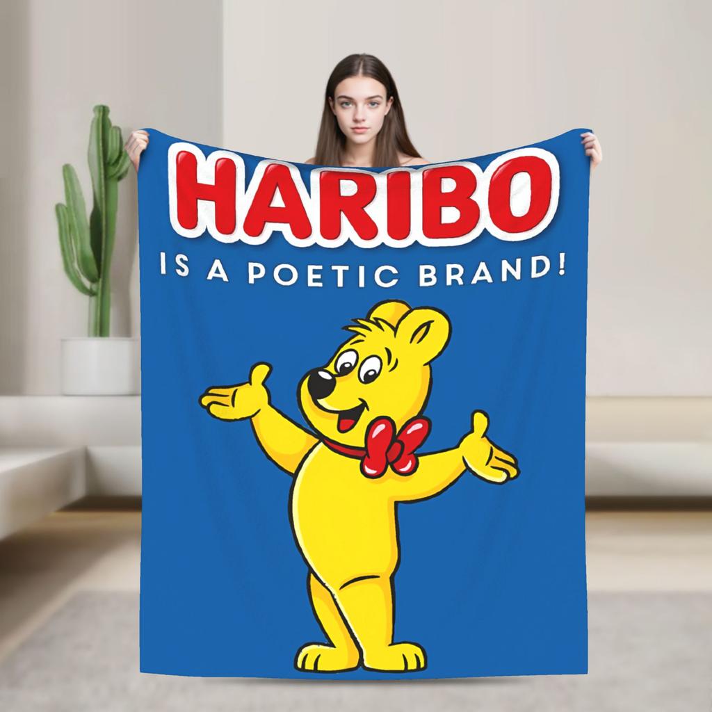 Haribo Bear Candy Flannel Blanket Winter Soft Durable Throw Blanket for Students Couch Bed Novelty Bedspread Sofa Bed Cover