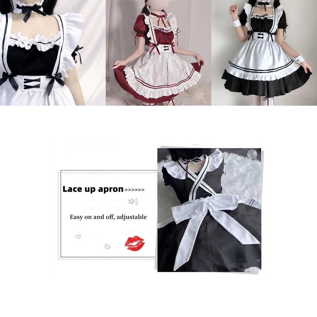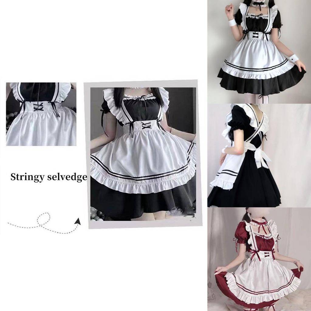 Fascinating Girls' Red/black Lolita Maid Dress Set For Party