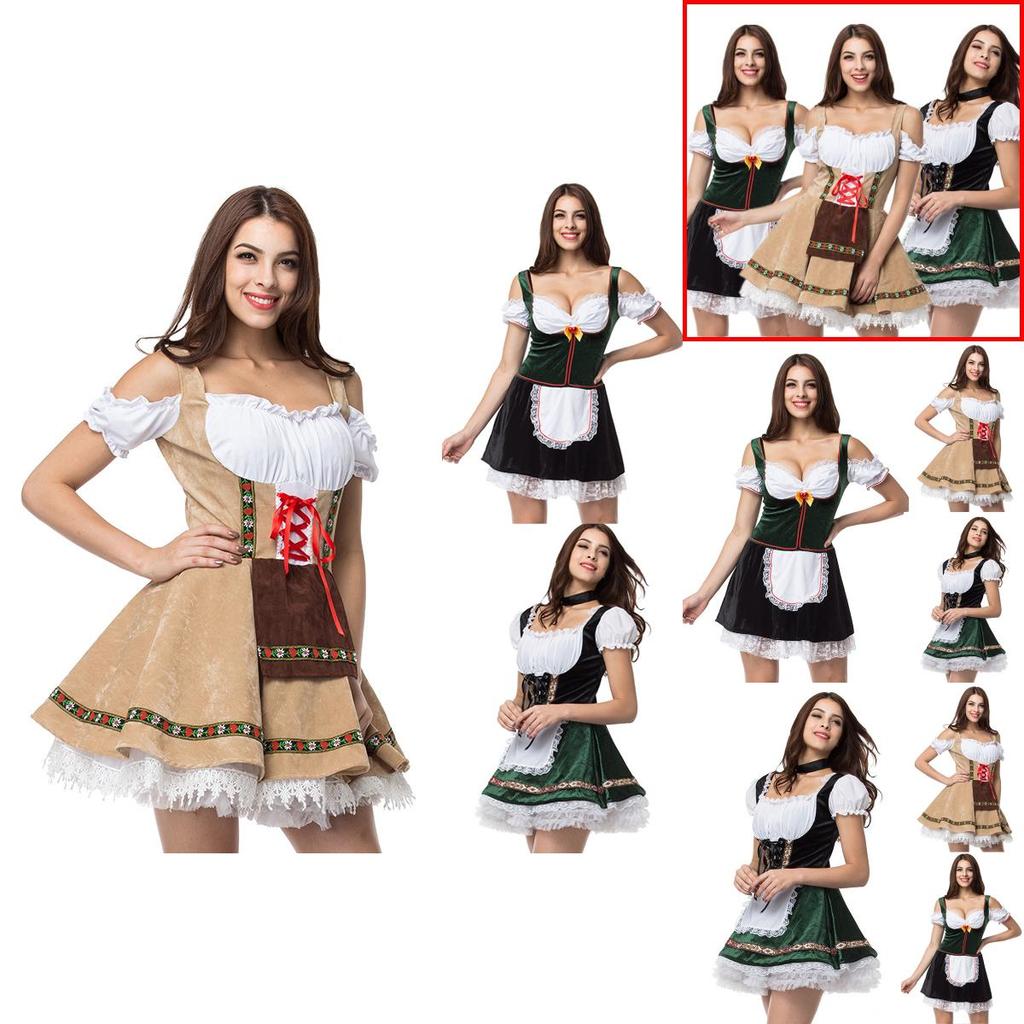 Charming Green V Neck Dirndl Costume Featuring Lace Design Ideal For Oktoberfest Events