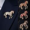 Luxury Zodiac Animal Lapel Pins Rhinestone Metal Badge Pin Strong Horse Brooches for Women