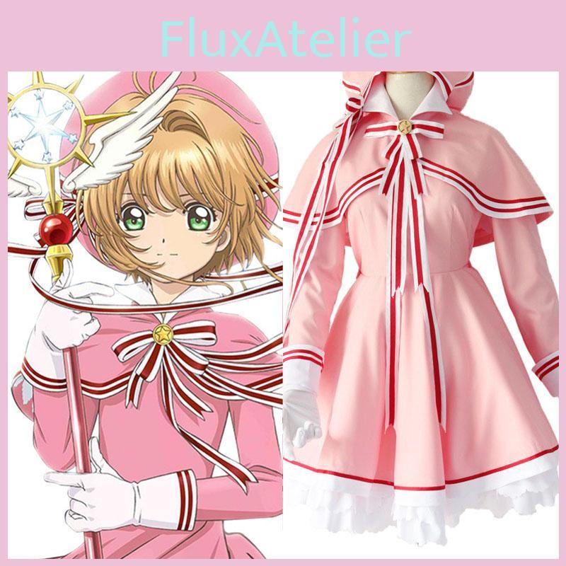 Очаровательный костюм для косплея Cardcaptor Sakura Kinomoto, розовое платье со шляпой для женщин