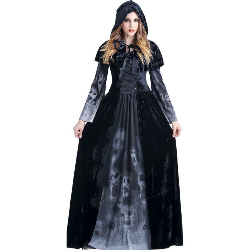 Enchanting Women's Wicked Queen Gothic Witch Costume With Elegant Long Bell Sleeves — купить товар онлайн с бесплатной доставкой по всему миру!