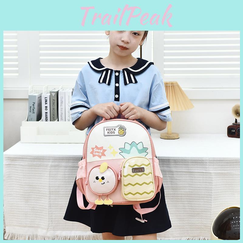 This kids school pack features a playful animal motif and trendy car stitching, designed for early learning and play. Made of durable Oxford cloth with polyester lining, it measures approximately 12 inches in height, 9 inches in width, and 4 inches in depth. The backpack supports lightweight carrying with curved shoulder straps, making it suitable for preschool students. Ideal for school use, it resists everyday wear and is easy to clean with a damp cloth.