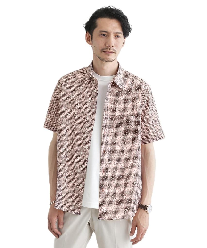 Эта футболка с короткими рукавами имеет принт на ткани рипл, характеризующейся своей текстурированной, мятой поверхностью.