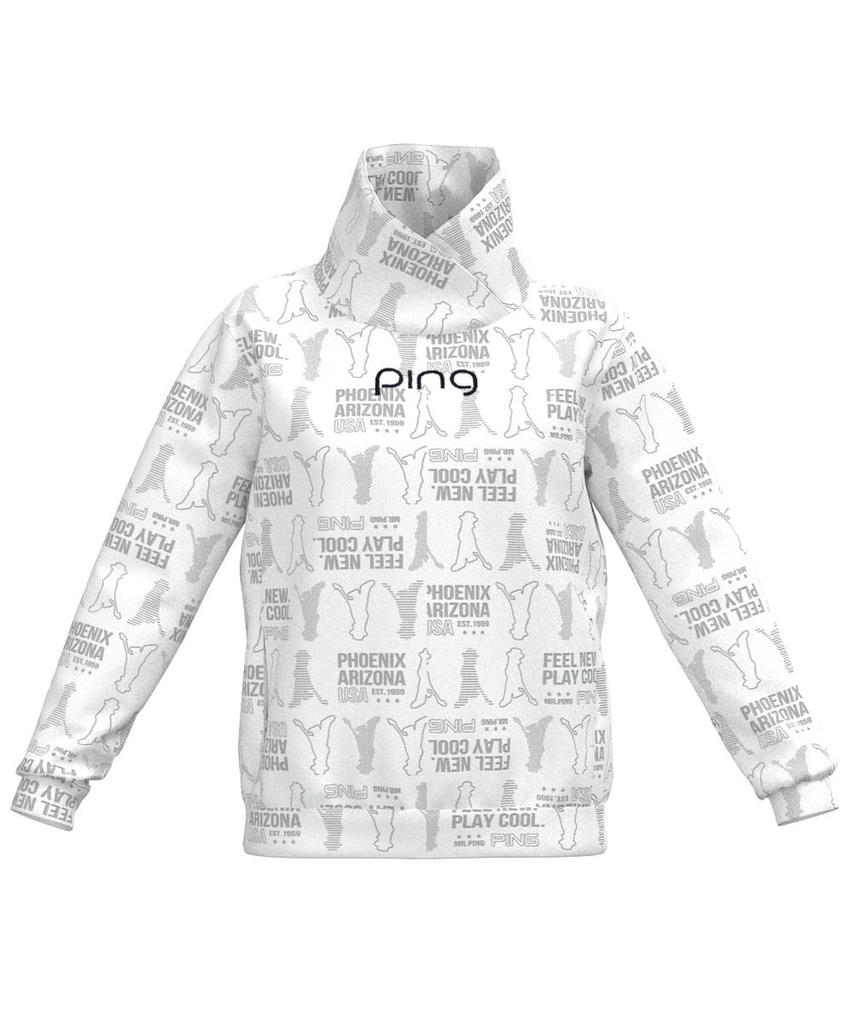 PING Apparel Women's Long Sleeve High Neck Shirt (Mr. PING Shadow Pattern) / Golf Undershirt / 622-3269900 030_White, Size LL