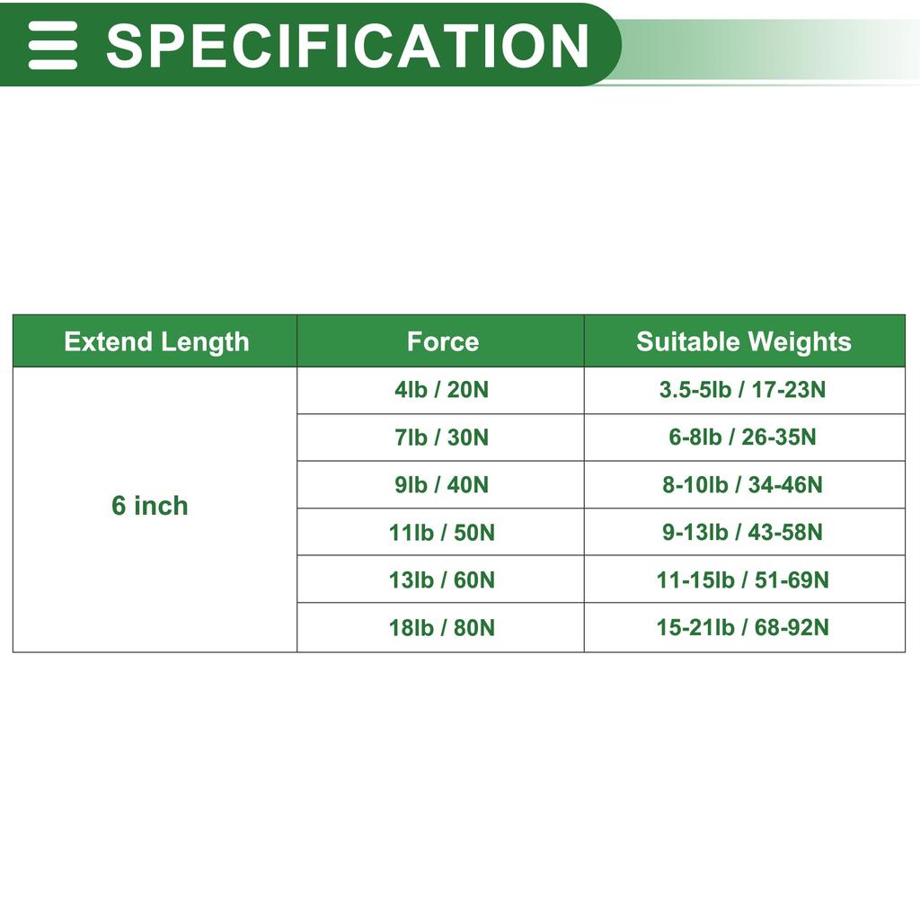 Характеристики: Увеличенная длина: 6 дюймов/155 см, Длина в сжатом состоянии: 4,3 дюйма/110 мм, Сила: 4 фунта/20 Н/2 кг, Диапазон поддерживаемого веса: 3,5-5 фунтов - 17-23 Н, Цвет: Черный, Размер отверстия кронштейна: 4 мм/0,16"
