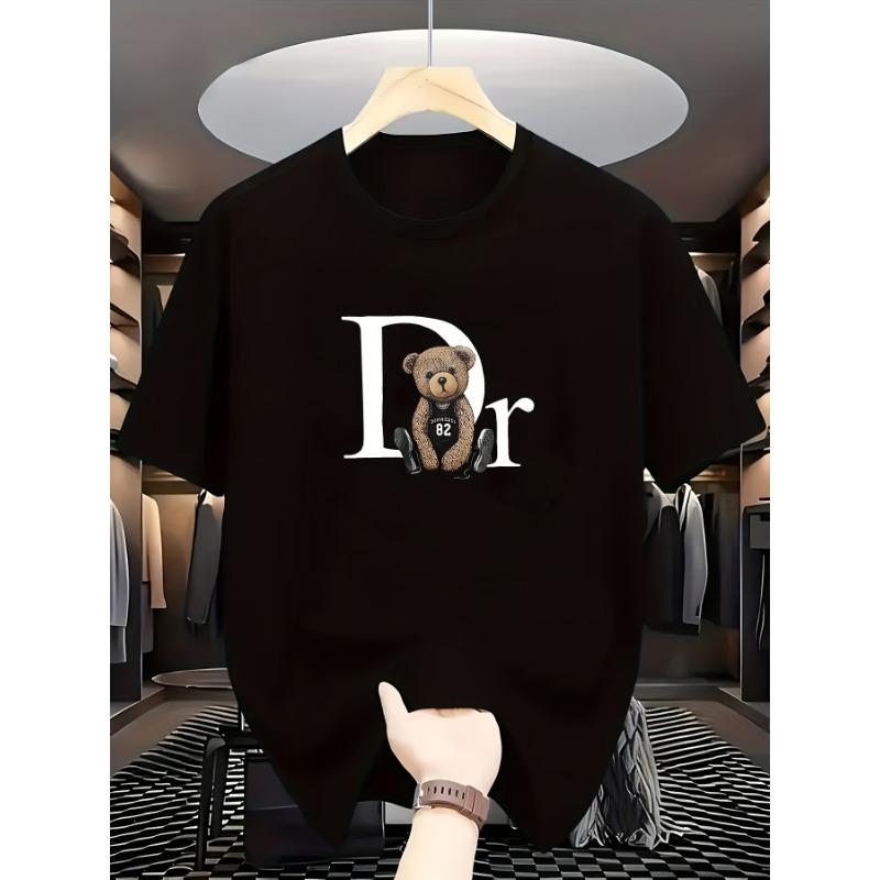 Рукав Круглый вырез Повседневная одежда Игривый принт с мишкой Летняя повседневная графическая футболка Геометрический принт Эстетичная одежда