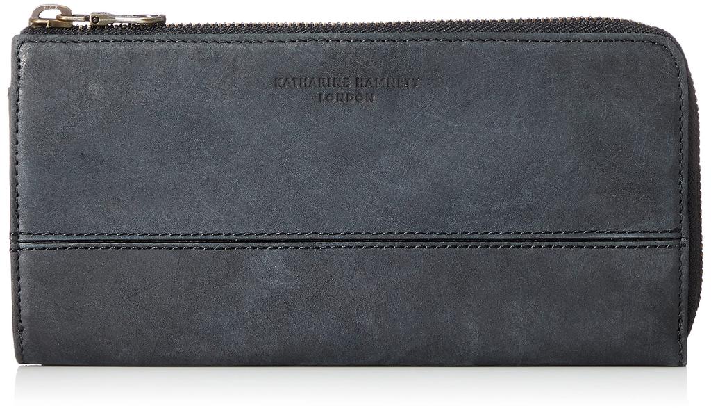 [Katherine Hamnett London] [СКРАБ] Японская кожа растительного дубления с рукописным царапинообразным узором, Большой кошелек на молнии