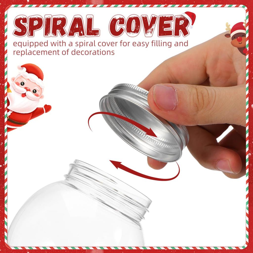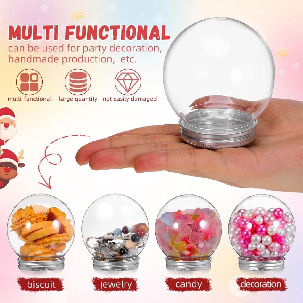 Lurrose 9-Piece Clear Plastic Snow Globe DIY Kit, 270ml Spherical Globes for Holiday Decorations and Kids' Crafts