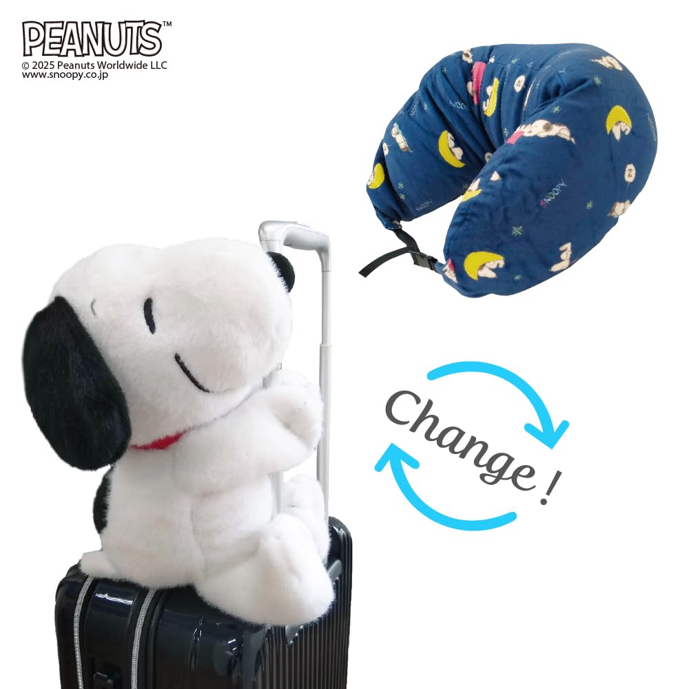 SNOOPY Travel Neck Pillow, Air Pillow with Microbeads, Fluffy, Flips Inside Out, Transforms into a Cute Character, Take It With You! Snoopy Starry Sky