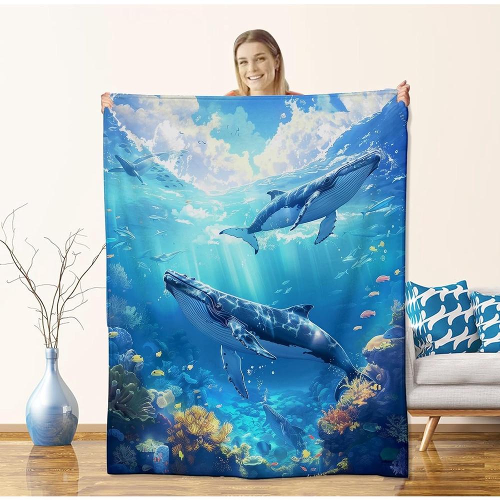 Океаническое животное Китовая акула Плед Плюшевый Фланелевый Накидка с Дизайном Китов и Морской Жизни, Мягкие Теплые Кровати на Все Сезоны