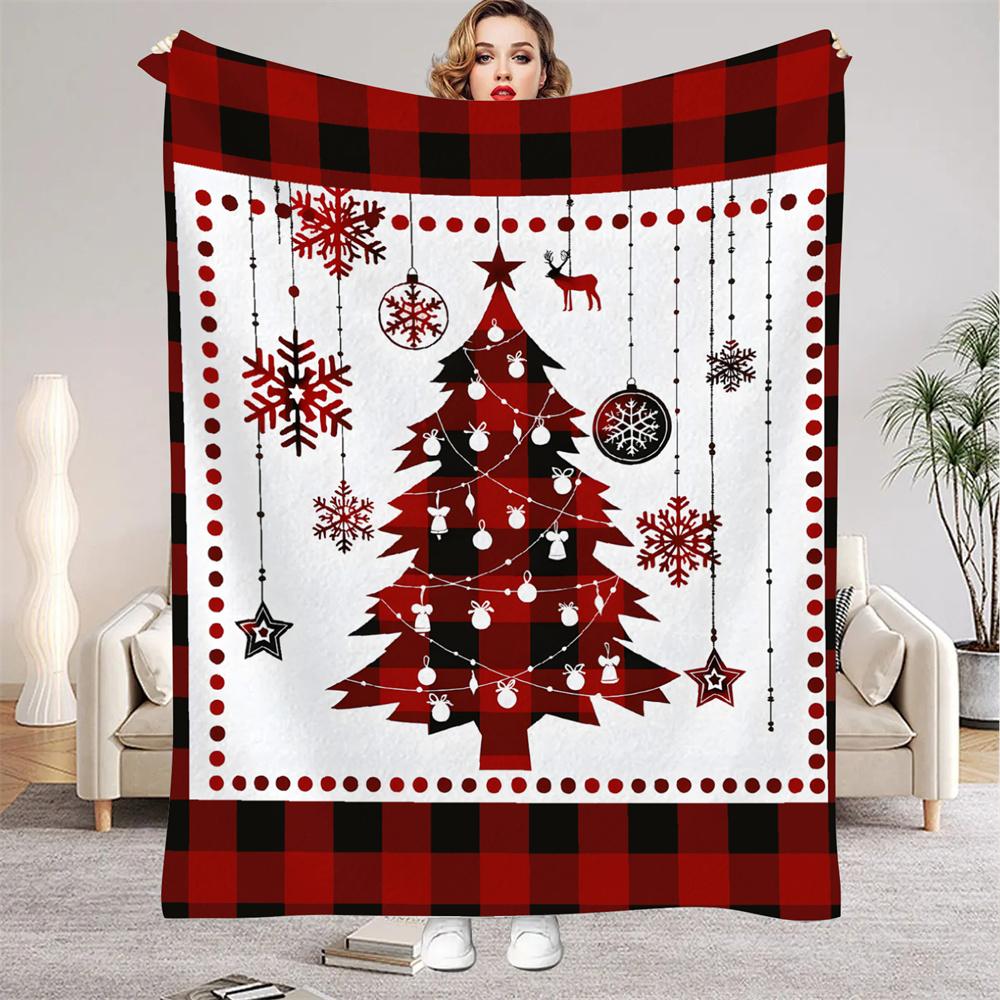 Рождественский плед Мягкий клетчатый Олень Елка Снежинка Принт Фланелевый плед Все сезоны для дивана Кровать Комнатный декор