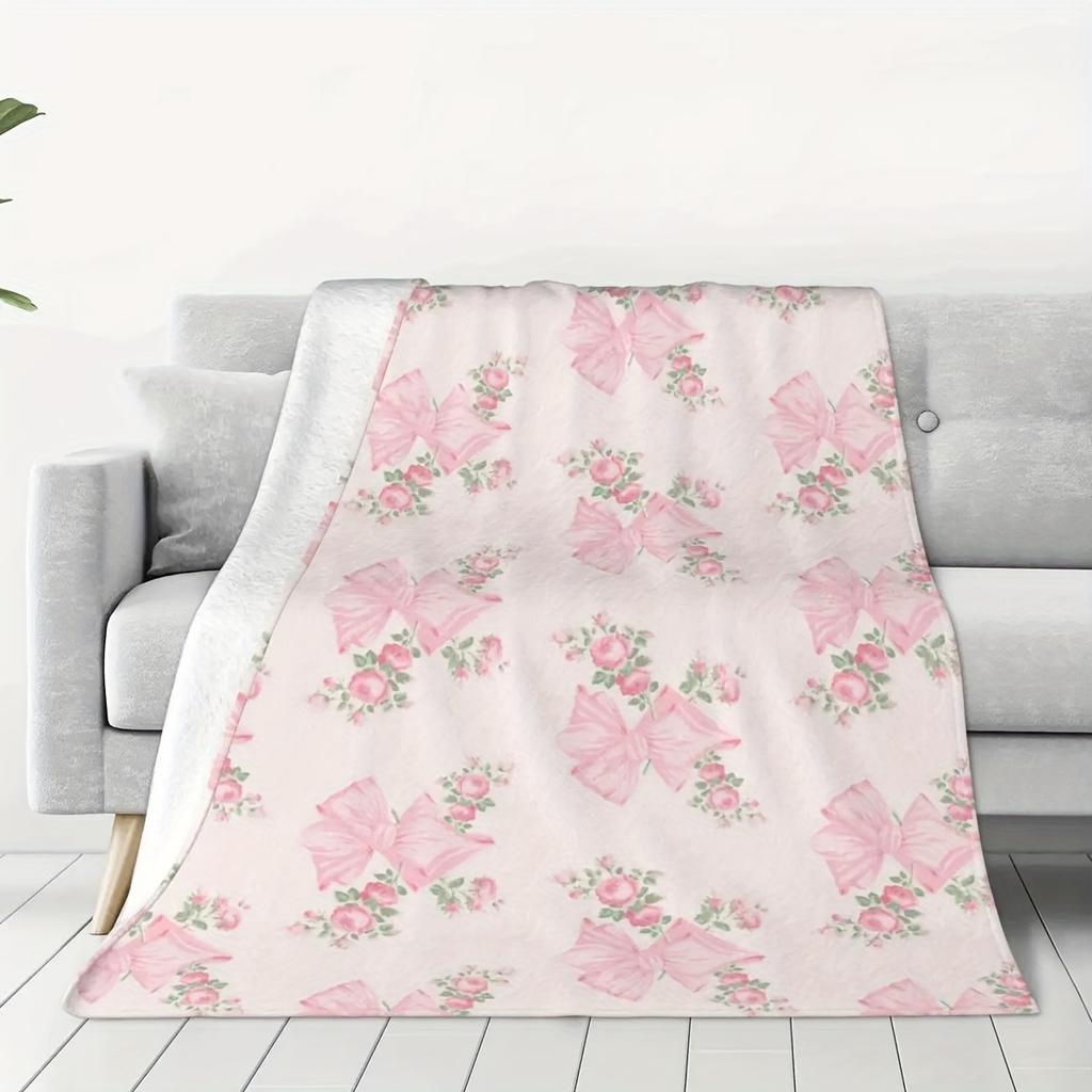 Мягкий Уютный Розовый Бант Цветочный Фланелевый Плед Универсальный для Офиса Кемпинга и Путешествий Тепло на Все Сезоны Машинная Стирка