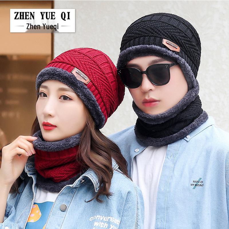 Мужская зимняя вязаная шерстяная шапка с бархатной подкладкой и шарфом для защиты ушей
