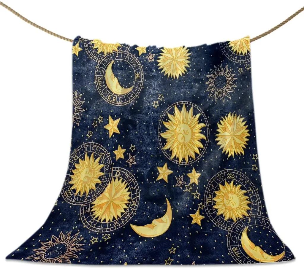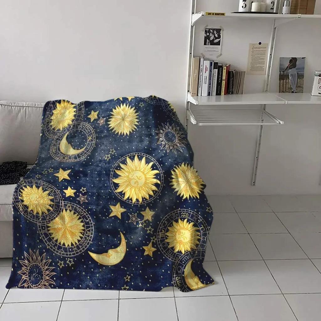 Фланелевые пледы Бохо Шик Золотое Солнце Луна и Звезды Синее Черное Небо Антикварные Пледы Легкий Мягкий Уютный Теплый Плед