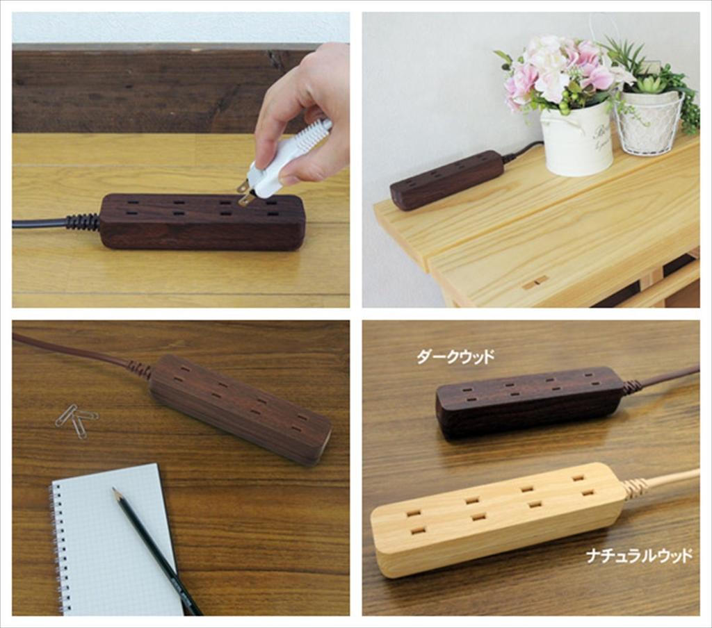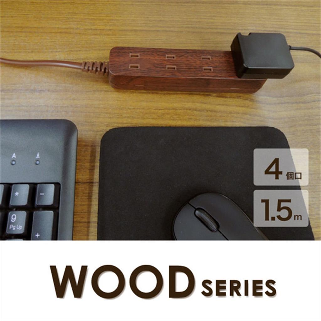 TOPLAND 4-Outlet Power Strip with Extension Cord (1.5m) for up to 1500W Total, Dark Wood, M4249-DW