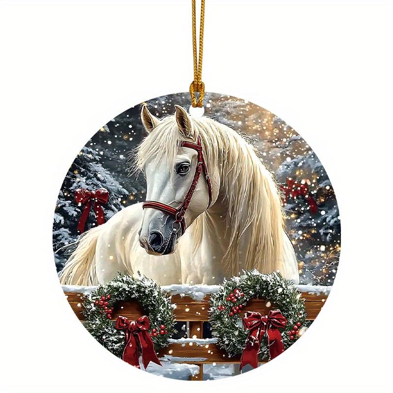 2025 Фермерский Белый Конь Рождественское Украшение - Акриловый Подвесной Декор для Дерева, Праздничный Подарок для Женщин | Фермерское Рождественское Украшение для Дерева