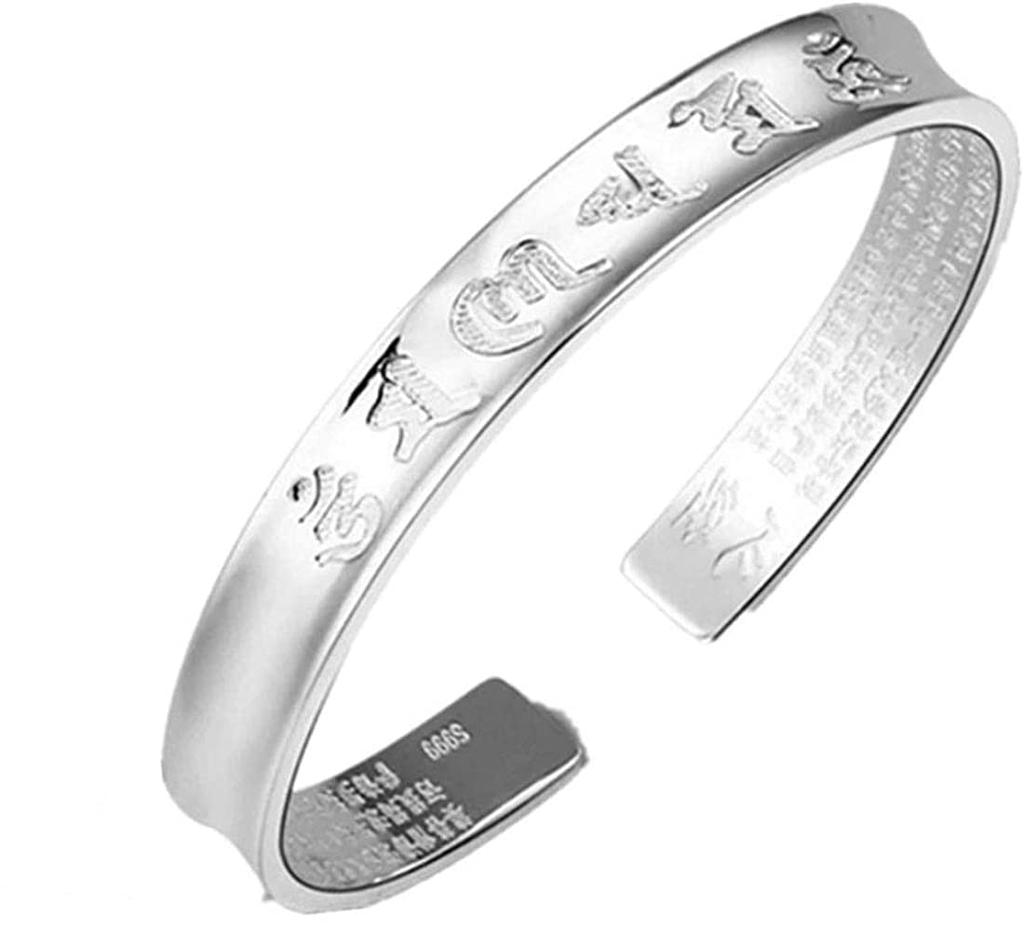 Pure Silver Bangle, Women's, Free Size, S999, Mantra, Heart Sutra, Amulet Bracelet, Free Size, Silver, Unisex Accessory — купить товар онлайн с бесплатной доставкой по всему миру!