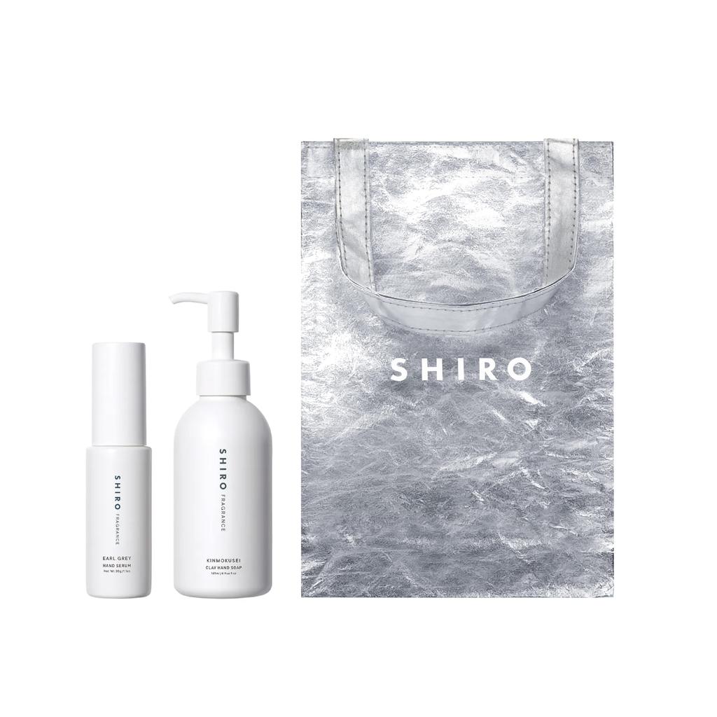 Ingredients: Hand serum: Water, BG, glycerin, jojoba seed oil, fragrance, octyldodecyl myristate, hydrogenated castor oil isostearate, shea butter, crested ginseng extract, squalane, diethylpentanediol dineopentanoate, hydrogenated lecithin, 1,2-hexanediol, xanthan gum, hydroxyethyl acrylate/sodium acryloyldimethyl taurate copolymer, sorbitan isostearate, polysorbate 60, carbomer, arginine, tocopherol, phenoxyethanol, methylparaben. Clay hand soap: Water, laureth. Sodium cellulose sulfate, acrylates copolymer, palm kernel amidopropyl betaine, fragrance, PEG-20 sorbitan cocoate, aloe vera leaf juice, volcanic ash, glycosyl trehalose, hydrogenated starch hydrolysate, isomerized sugar, dihydroxypropyl arginine HCl, sodium sulfate, sodium hydroxide, sodium chloride, citric acid, sodium citrate, magnesium chloride, magnesium nitrate, phosphoric acid, trisodium EDTA, phenoxyethanol, methylisothiazolinone, methylchloroisothiazolinone.