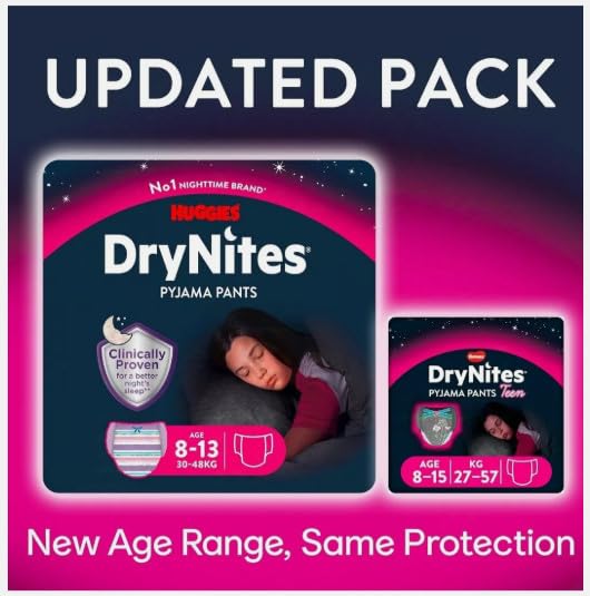 Huggies DryNites Подгузники-трусики от ночного недержания для девочек, 8-15 лет, 27-57 кг, Большая упаковка 13 шт. [Параллельный импорт]