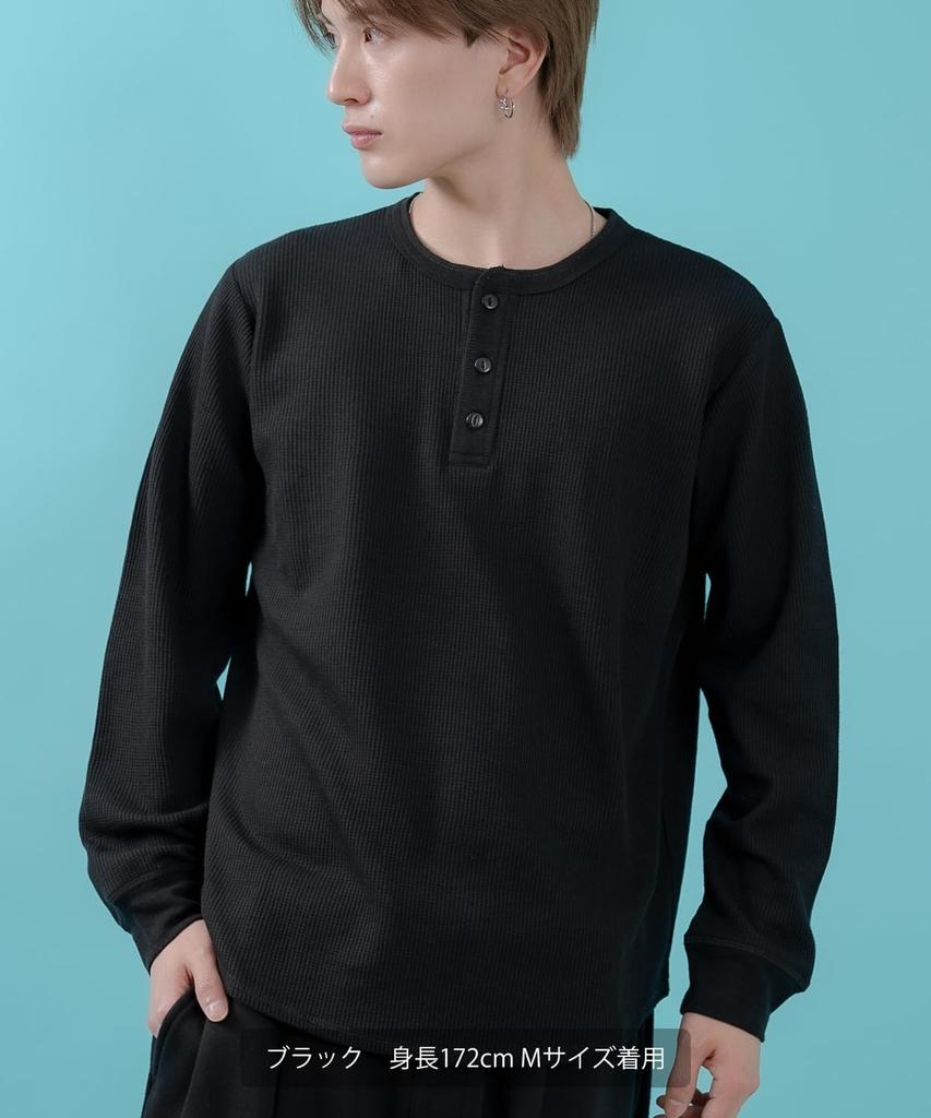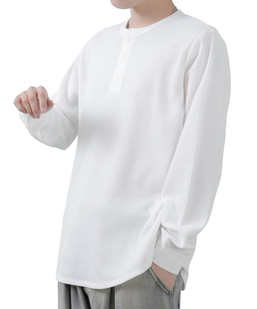 [IMPROVES] [SIDEWAYSTANCE] Waffle Henley Neck Long Sleeve T-Shirt