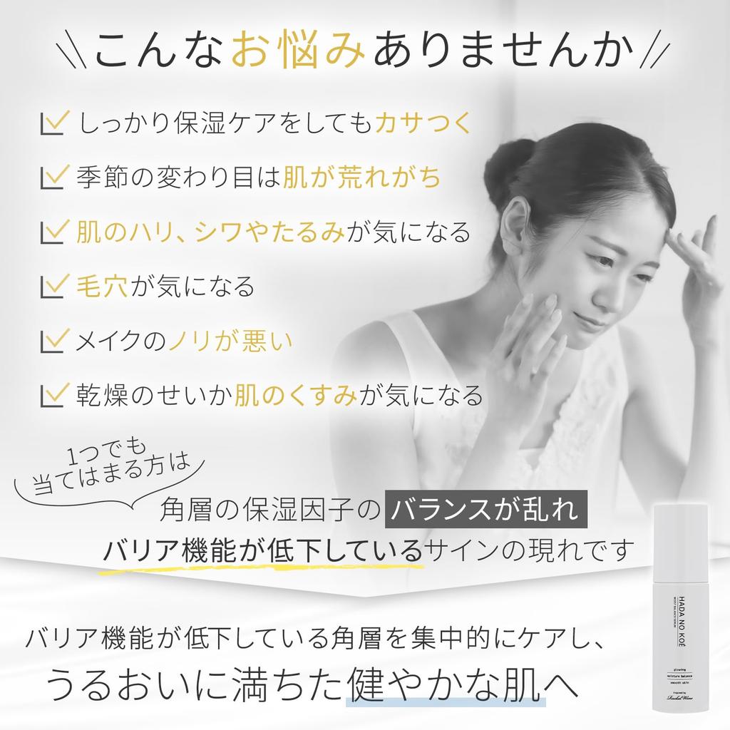 [Сквалан и гиалуроновая кислота защищают поверхность кожи] Сквалан, компонент кожного сала, и высокомолекулярная гиалуроновая кислота удерживают влагу на поверхности кожи. Низкомолекулярная гиалуроновая кислота также проникает в роговой слой для увлажнения.