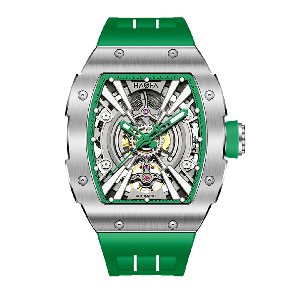 Haofa Men's Automatic Skeleton Watch with 316L Stainless Steel Case, Barrel and Tonneau Shape, Perfect for Baseball, Business, and Fashion.