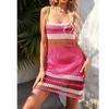 Характеристики: Разноцветные полосы, трикотажное платье с вырезами, пляжное платье, короткое платье, открытая спина, платье с подтяжками