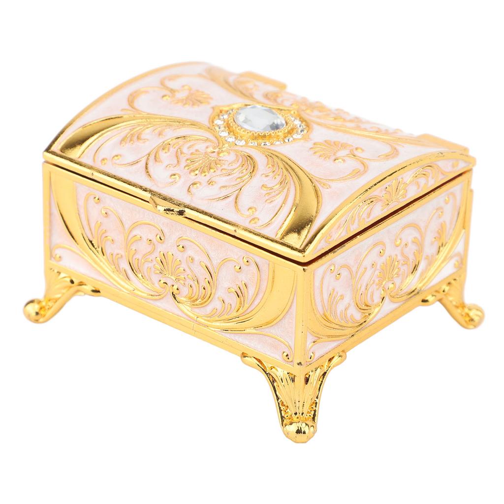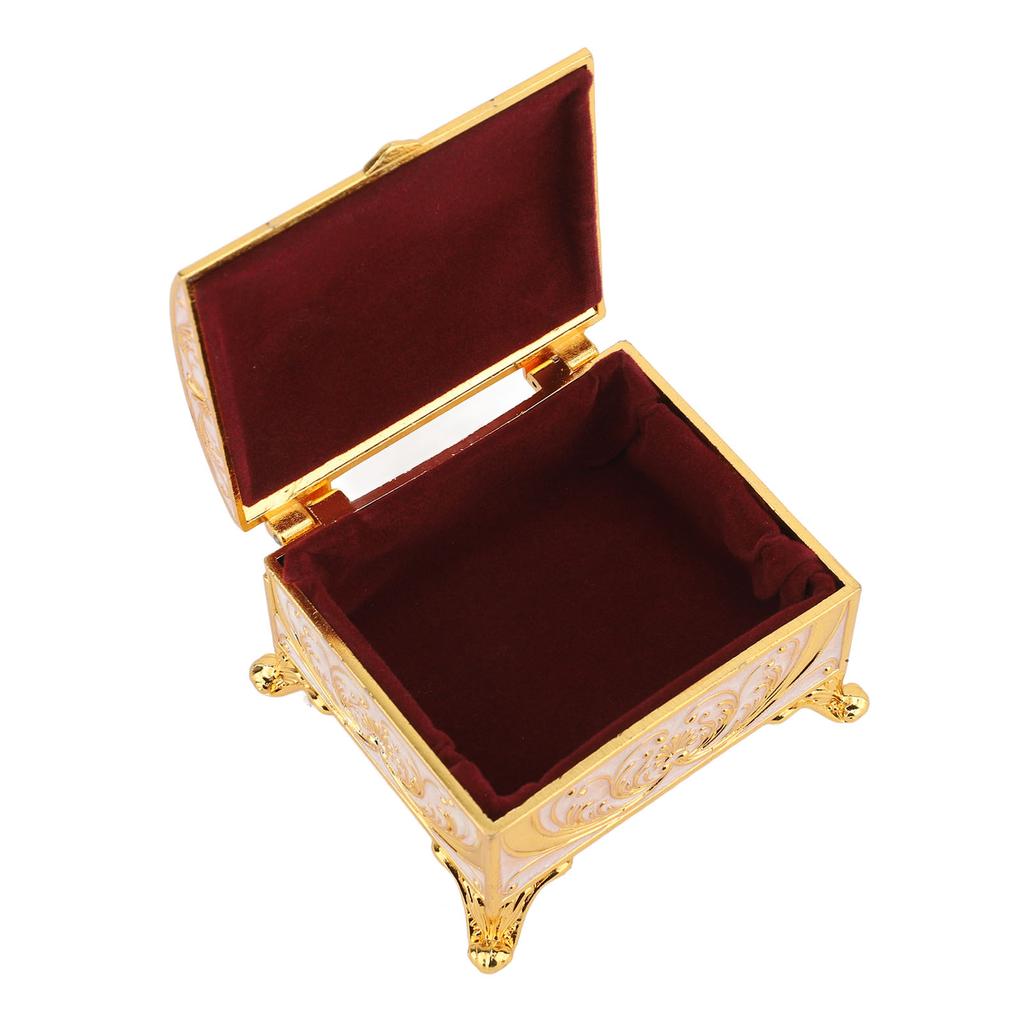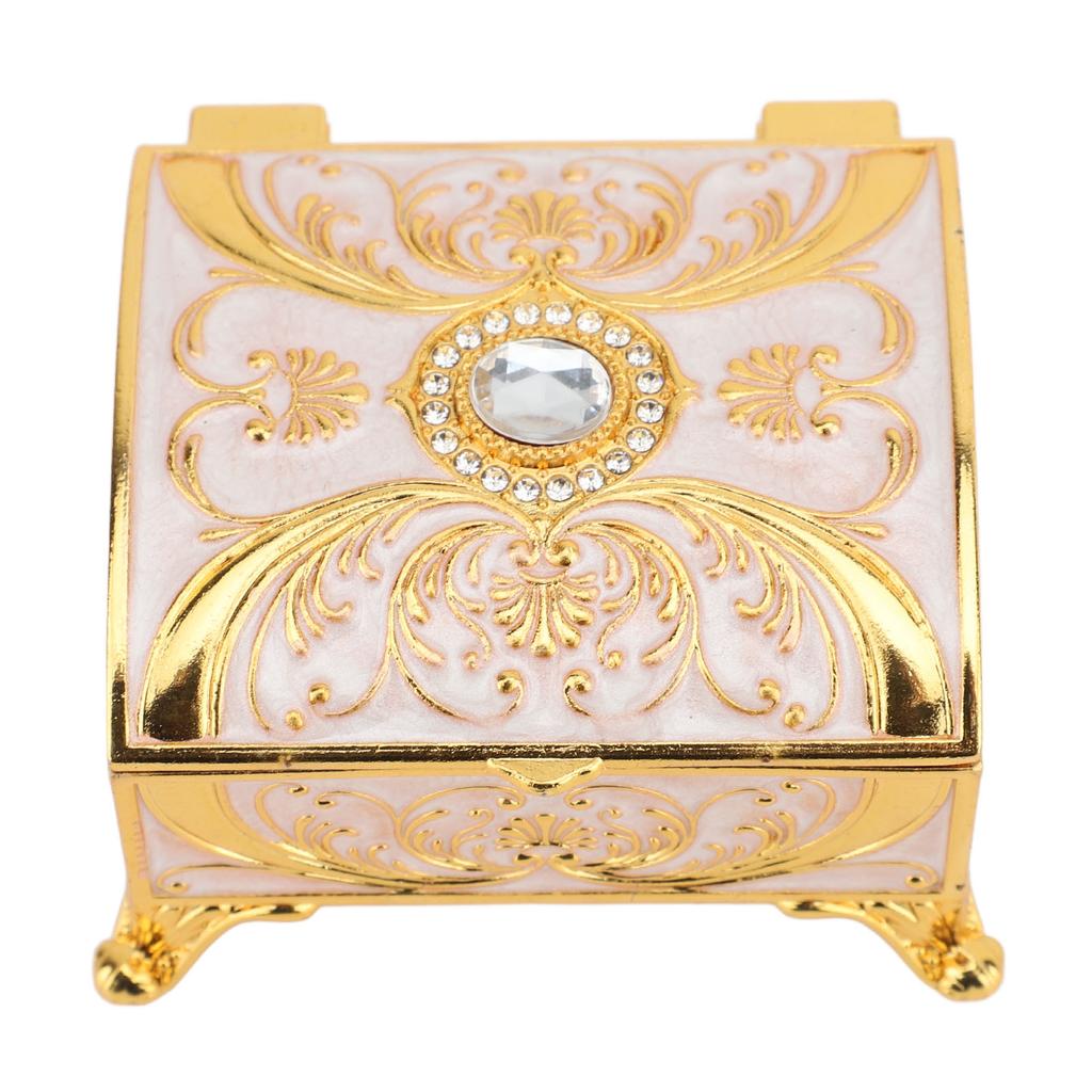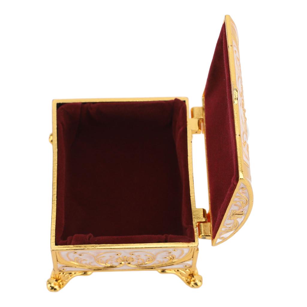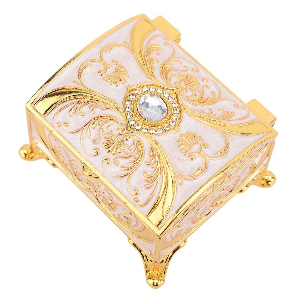 Винтажный эмалированный органайзер для мелочей прямоугольной формы с бархатной подкладкой, шкатулка для хранения ювелирных изделий для девочек, золото/белый