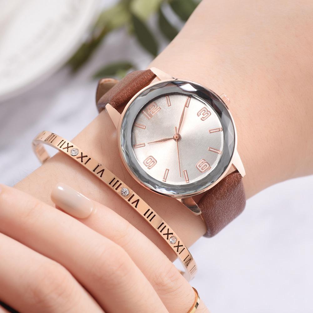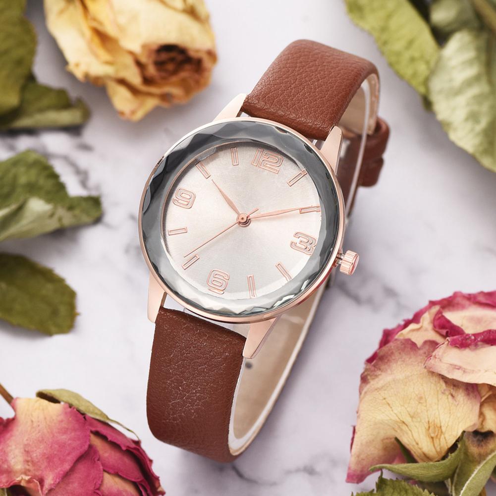 Simple Business Women Arabic numerals Dial PU Strap Watch Alloy Quartz Wristwatch (Brown)
