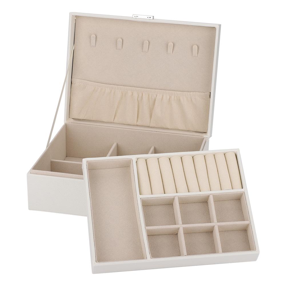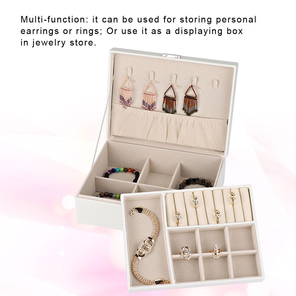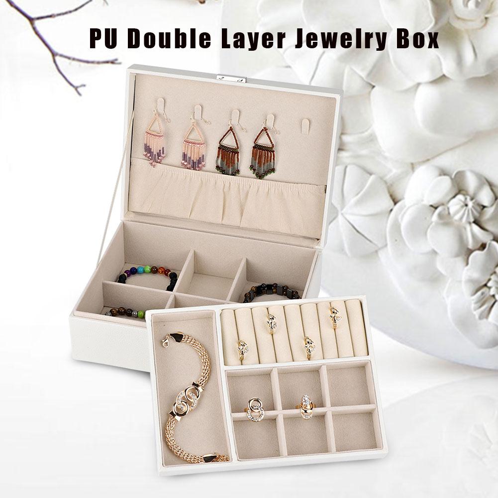 Double Layer Jewelry Earrings Rings Bracelet Necklace Box PU Organizer Storage (White)
