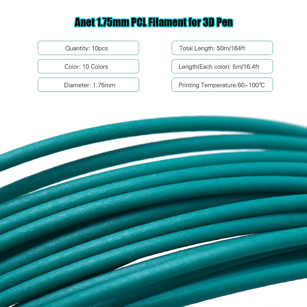 Диаметр 1,75 мм, температура печати от 60 до 100 градусов Цельсия (140 по Фаренгейту 212 по Фаренгейту ), подходит для большинства 3D ручек.
