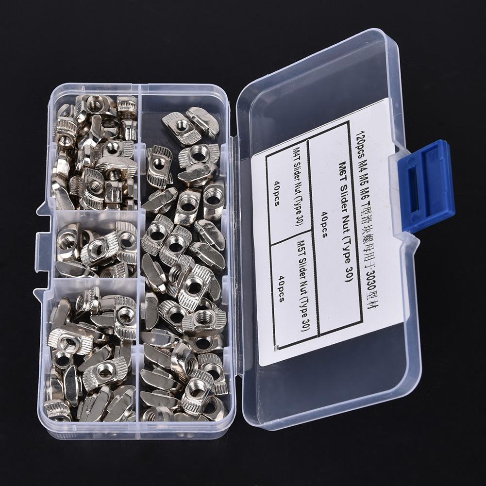 120pcs T Slot Sliding Nut M4 M5 M6 Hardware Fasteners for 3030 Aluminum Profiles