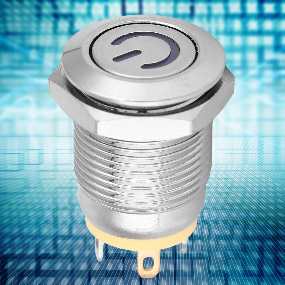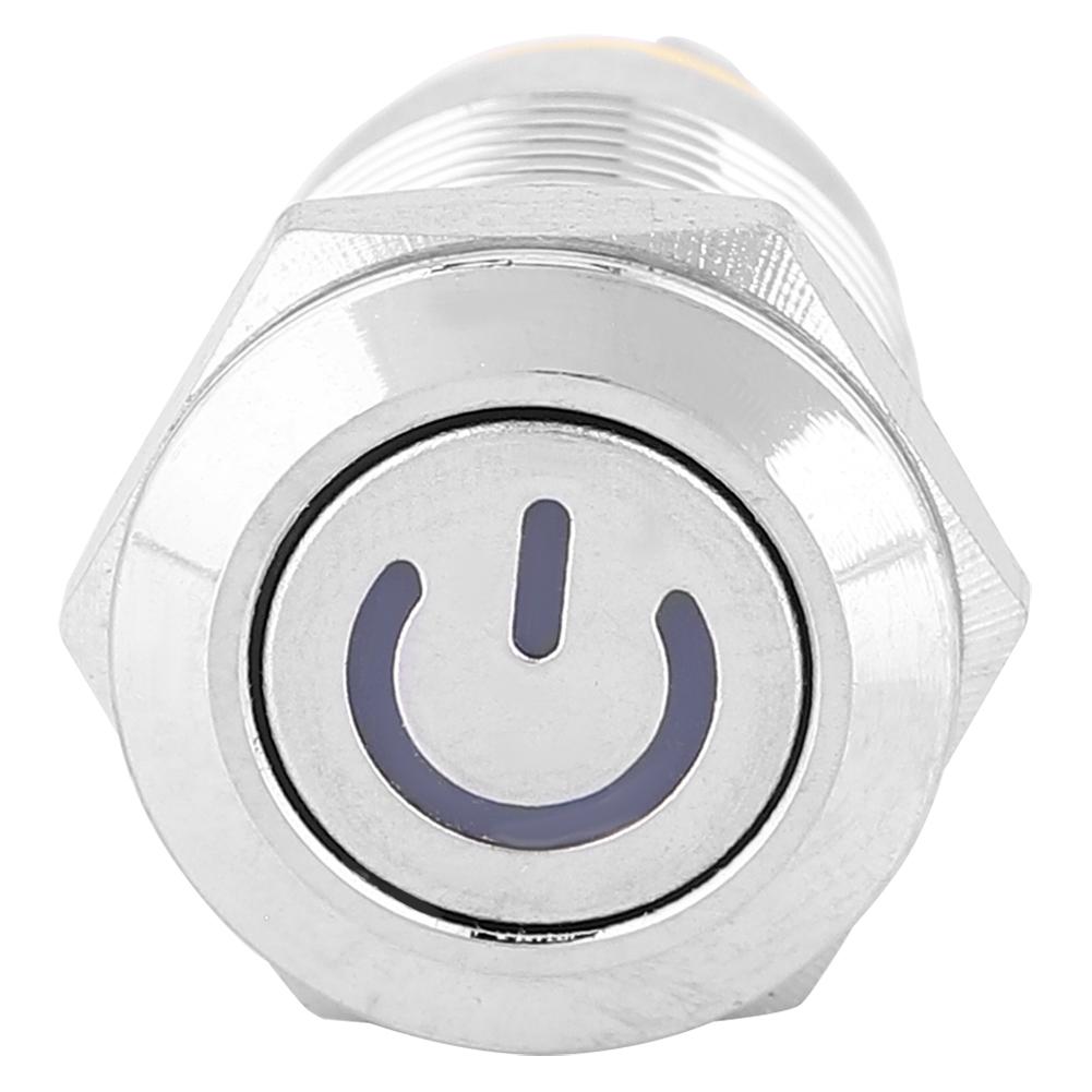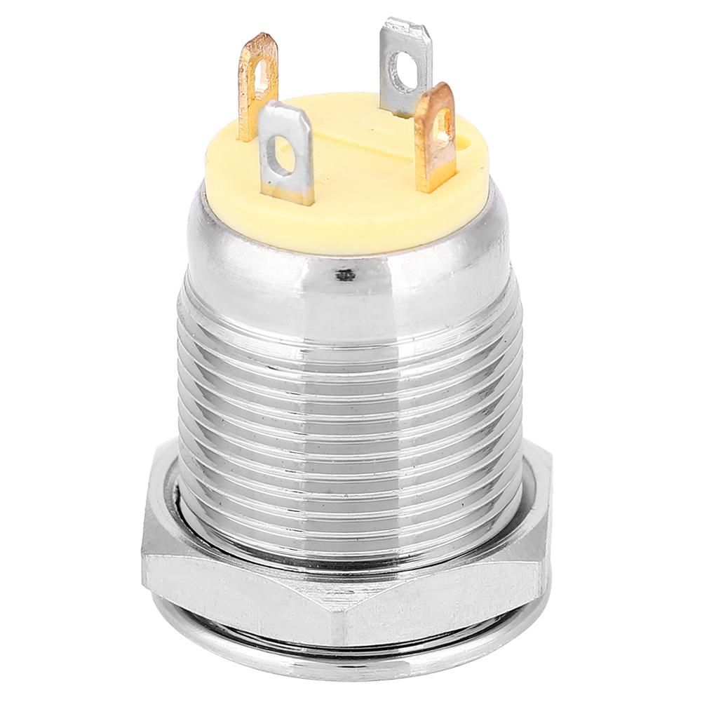 Yellow LED Light Waterproof Flat Head Self Reset Metal Push Button with Power Symbol 12mm(3V)