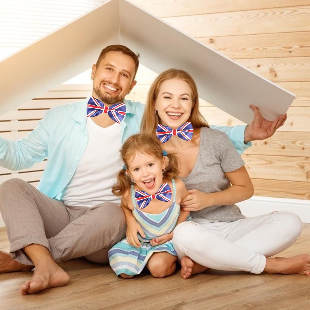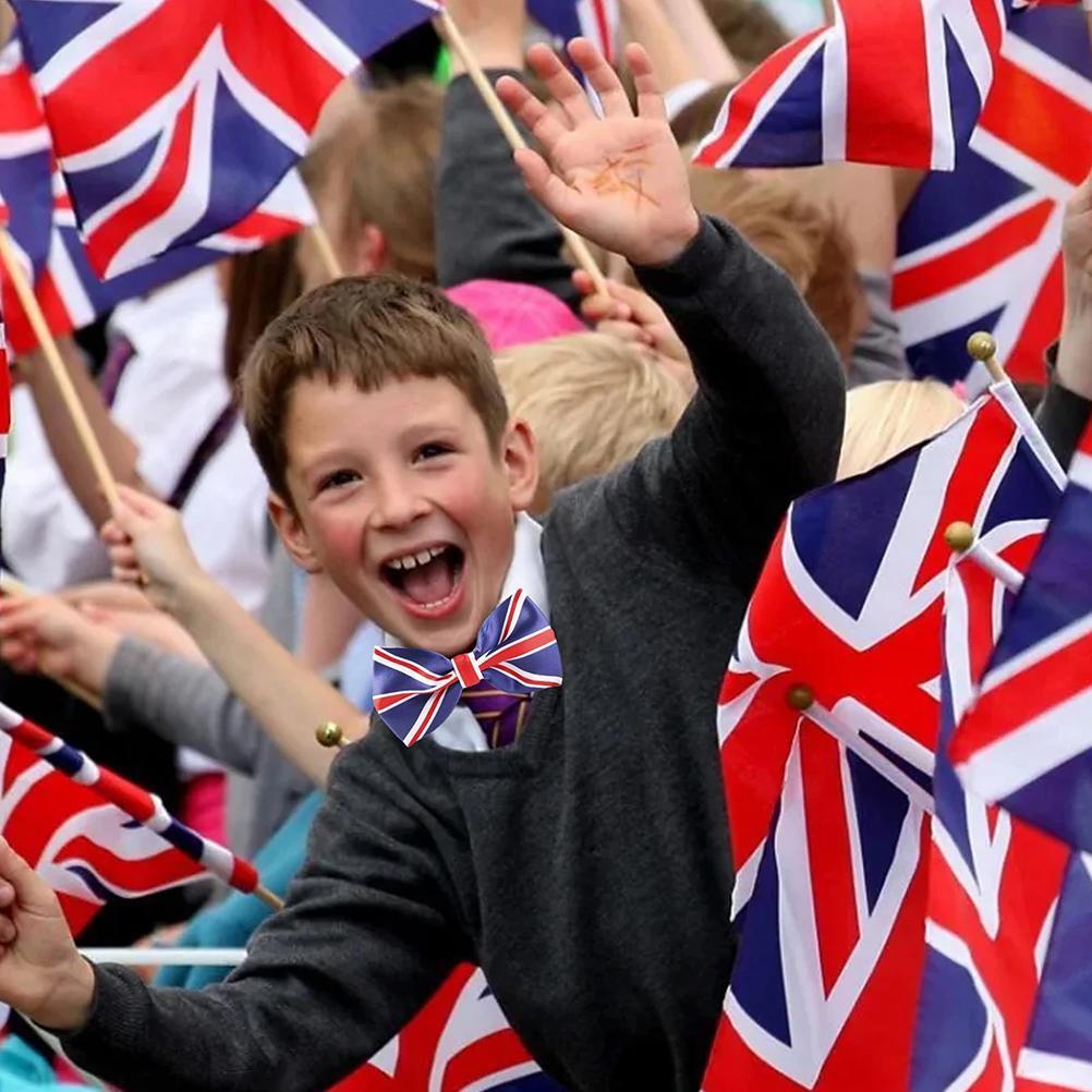 Union Jack Bow Tie Adjustable Neck British Flag Bowtie Queen Elizabeth Platinum Jubilee 70 Years Decorations