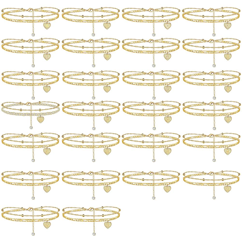 Пляжный браслет на щиколотку для женщин 26 букв Сердце Инициал Браслет на щиколотку Ручная работа Нежный Многослойный Буква Инициал Сердце Браслет на щиколотку Пляжный