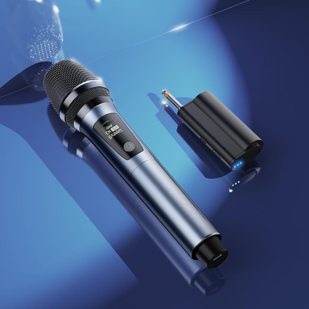 🎤【Простота в эксплуатации и удобство】: Никакой сложной настройки не требуется. Просто подключите приемник, и микрофон автоматически сопряжется.. Этот динамический микрофон отличается высококачественным звуком и шумоподавлением, а его корпус из сплава обеспечивает долговечность и стильный внешний вид.
