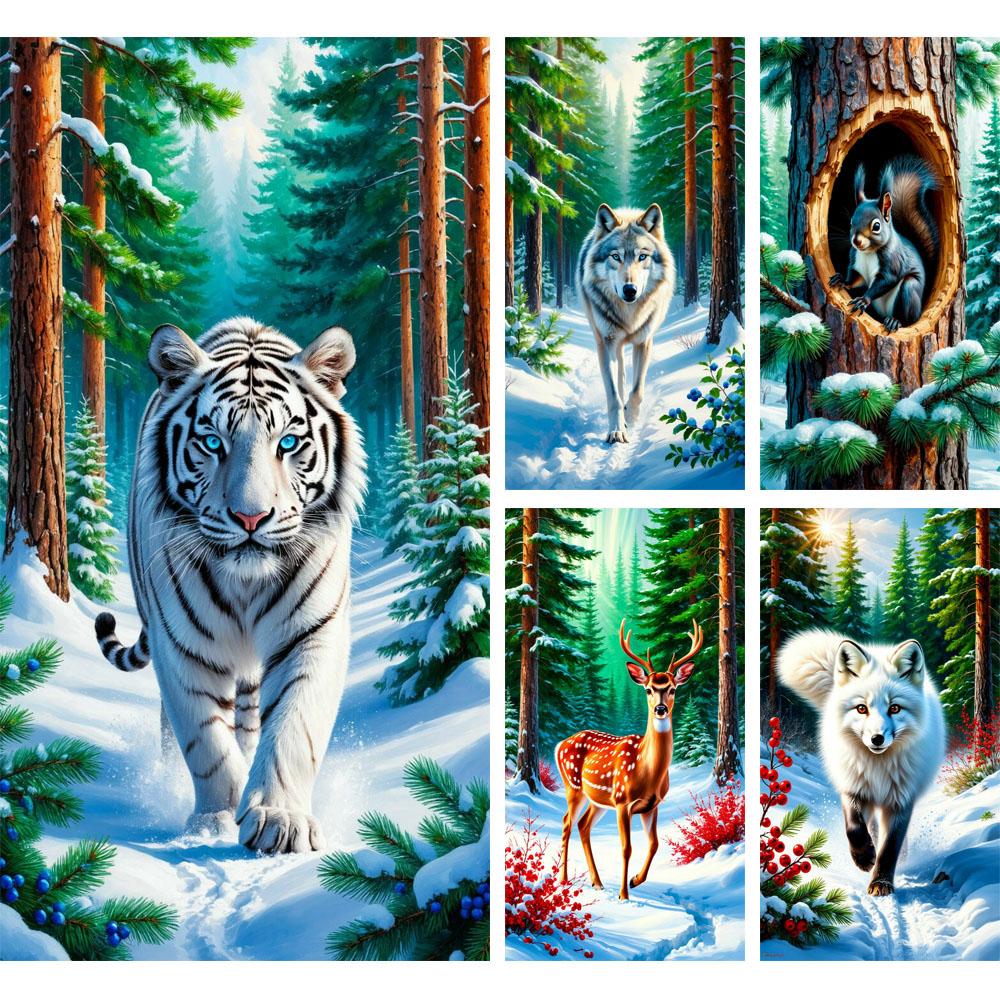 Тигр Волк Лиса в Зимнем Лесу Алмазная Вышивка Сделай Сам Крестиком Полная Выкладка Алмазная Мозаика Новая Коллекция Домашний Декор
