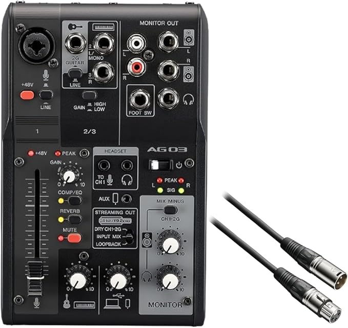 Live Streaming AG03MK2 BK & BX3/3.0 BK Microphone Cables, XLR to Canon Cable, 3.0m, 2-Piece Set