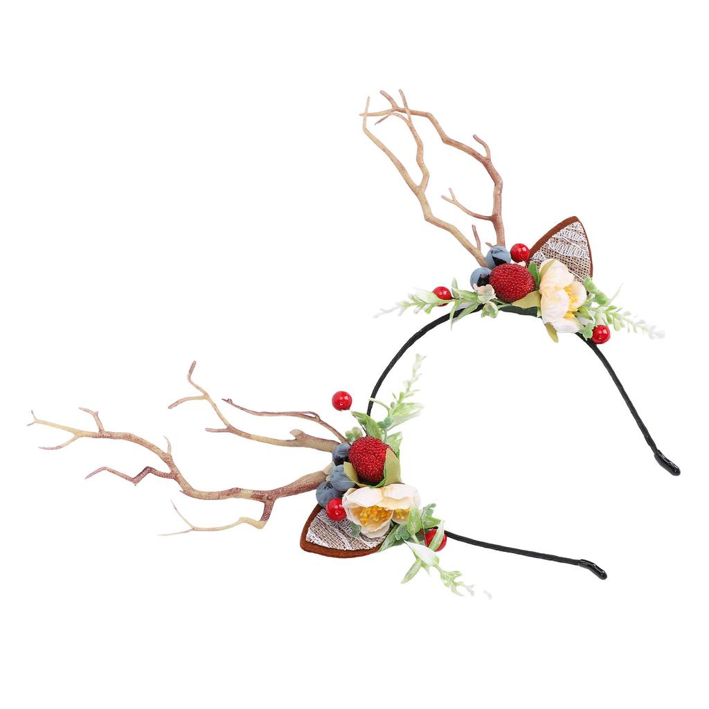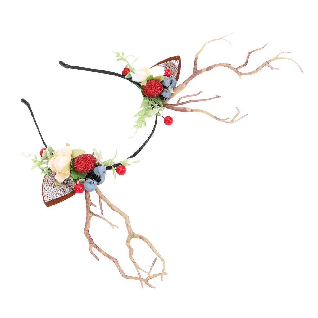Ободок с цветочной короной из оленьих рогов, Сказочный цветок, Головной убор для косплея северного оленя с кружевными ушками, Ветка с ягодами черники