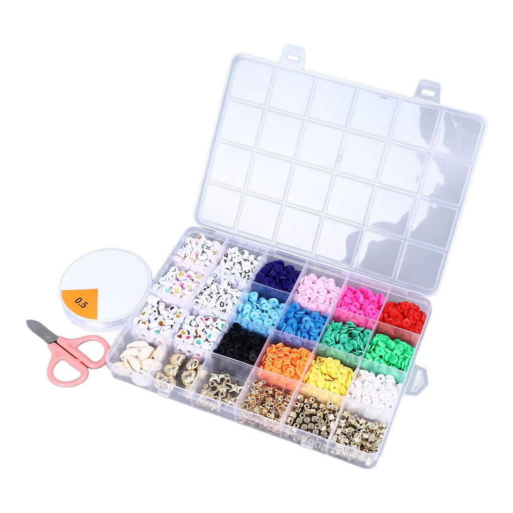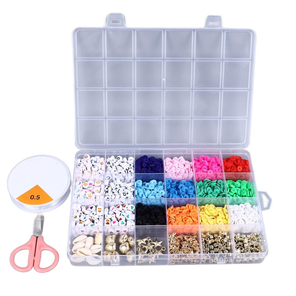 Clay Beads Kit for Bracelet Making 12 Colors 6mm Polymer Flat Round Clay Bead DIY Jewelry Making Accessoies 24 Grids