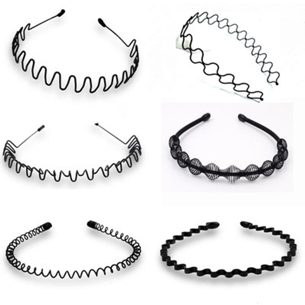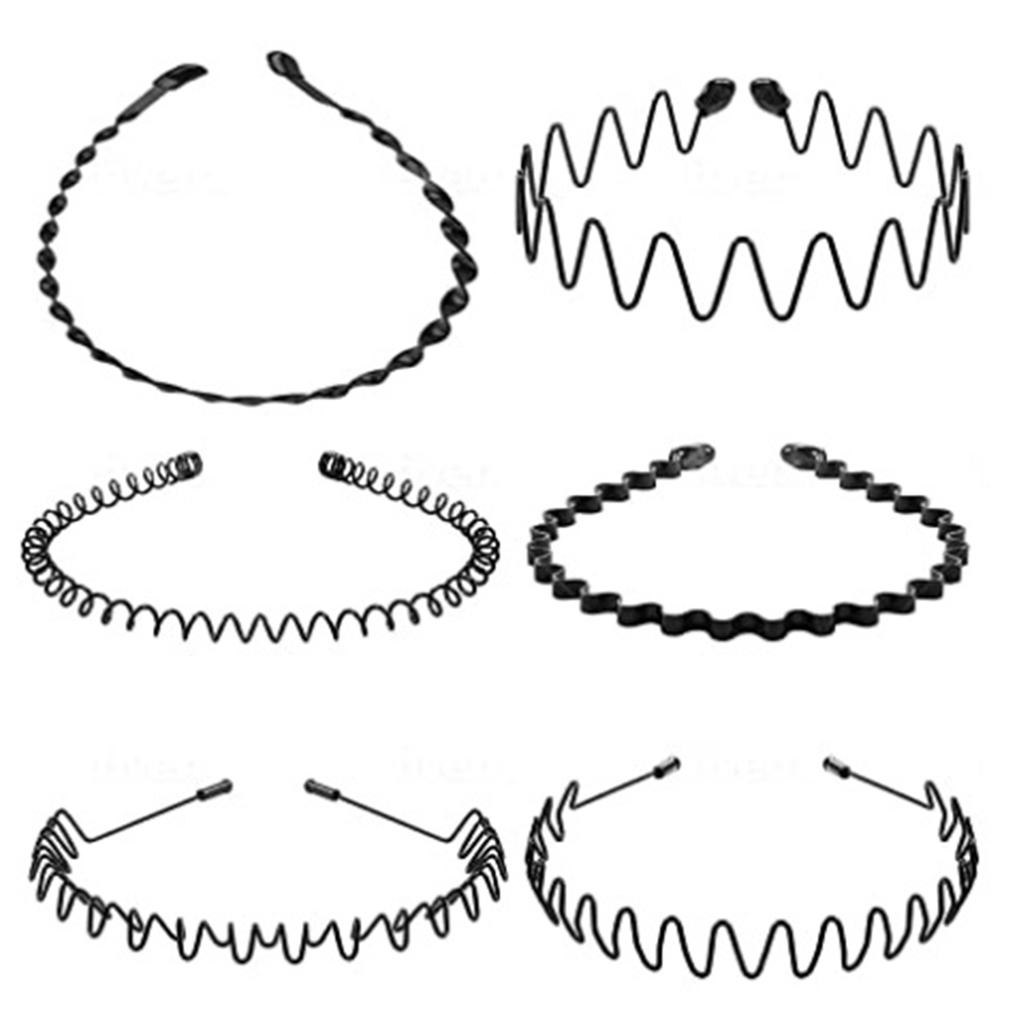 Повязка на голову черная модная изысканная простая металлическая для бега спорта макияжа 6 шт.