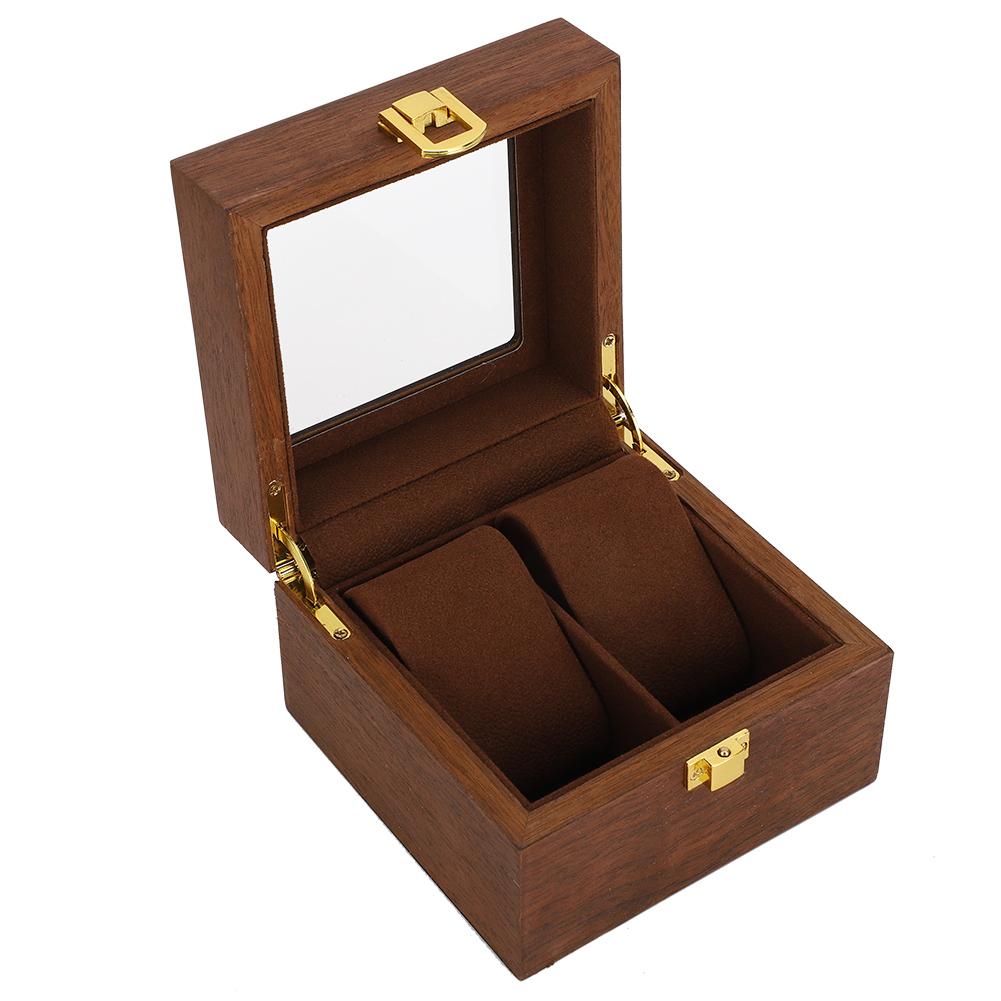 Деревянный кейс для часов на 2 слота, раскладная коробка для хранения часов, органайзер, цвет черного ореха