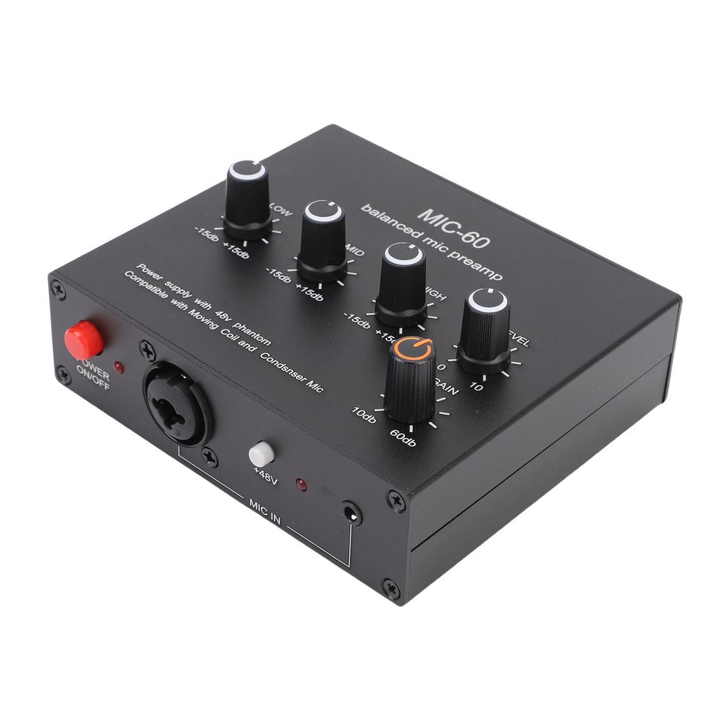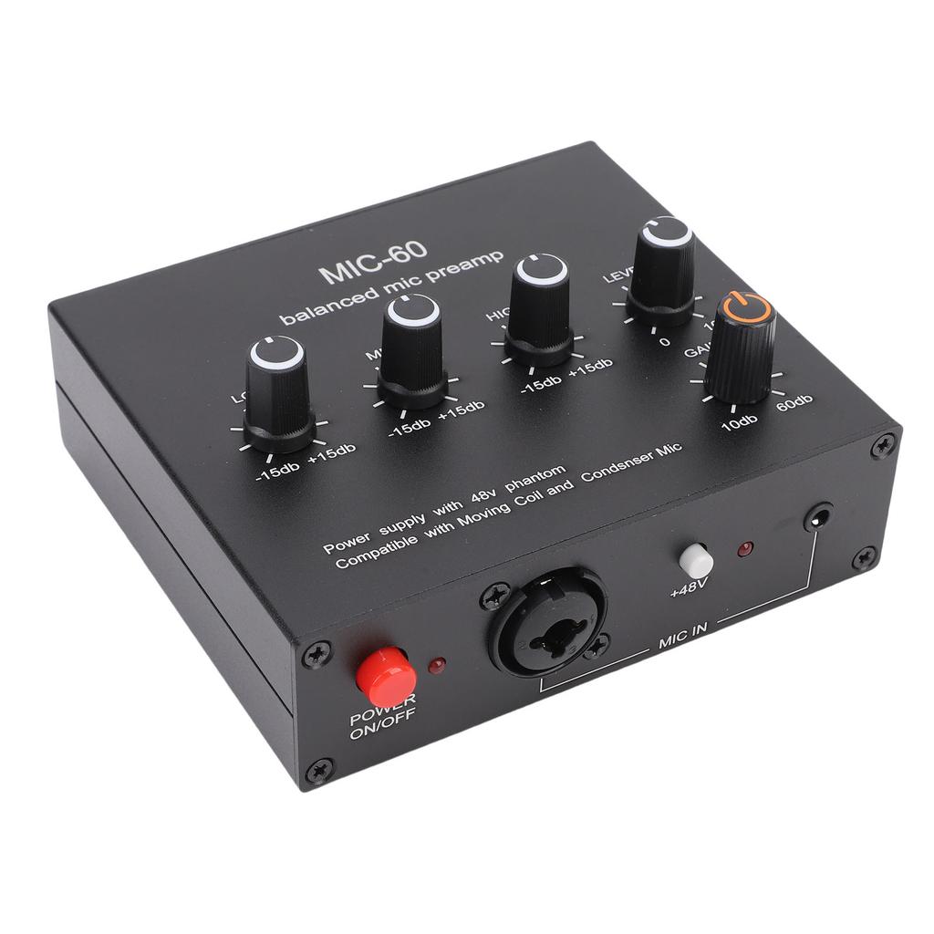 Микрофонный предусилитель 3,5 мм 6,5 мм XLR Вход Выход 60 дБ Усиление Конденсаторный и Динамический Микрофонный Предусилитель с Фантомным Питанием 48 В