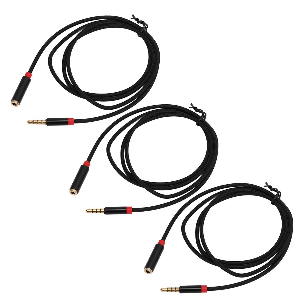 3Pcs Audio Cable 4 Pole 3.5mm Male Nylon Braided Cord for Microphone Phone Sound Card