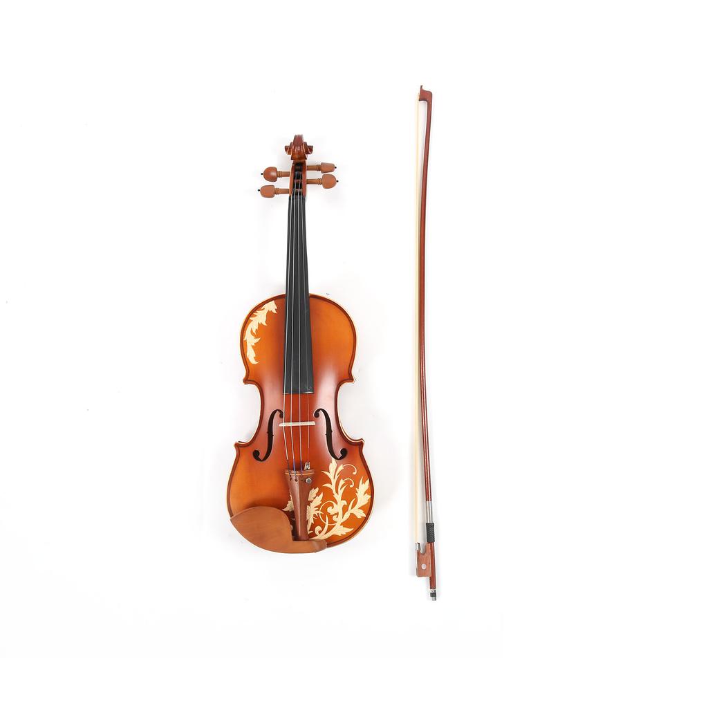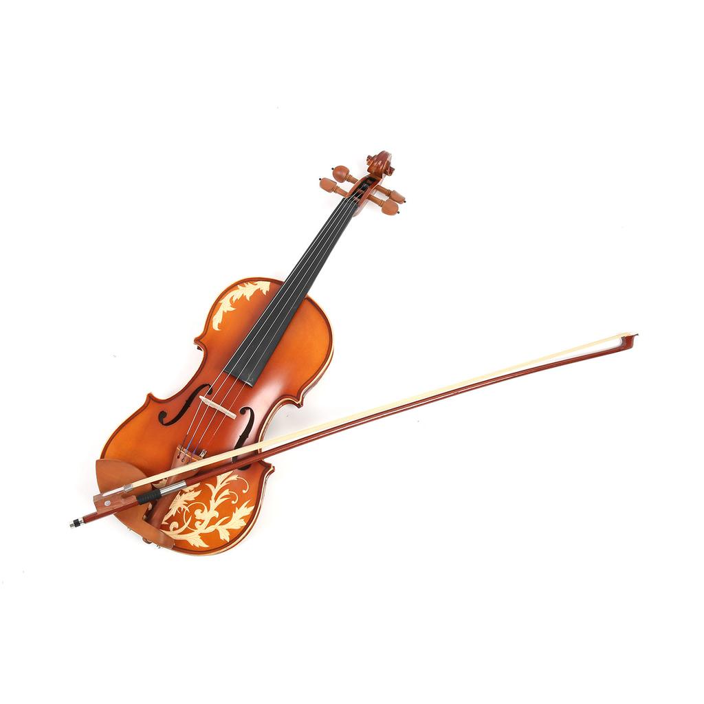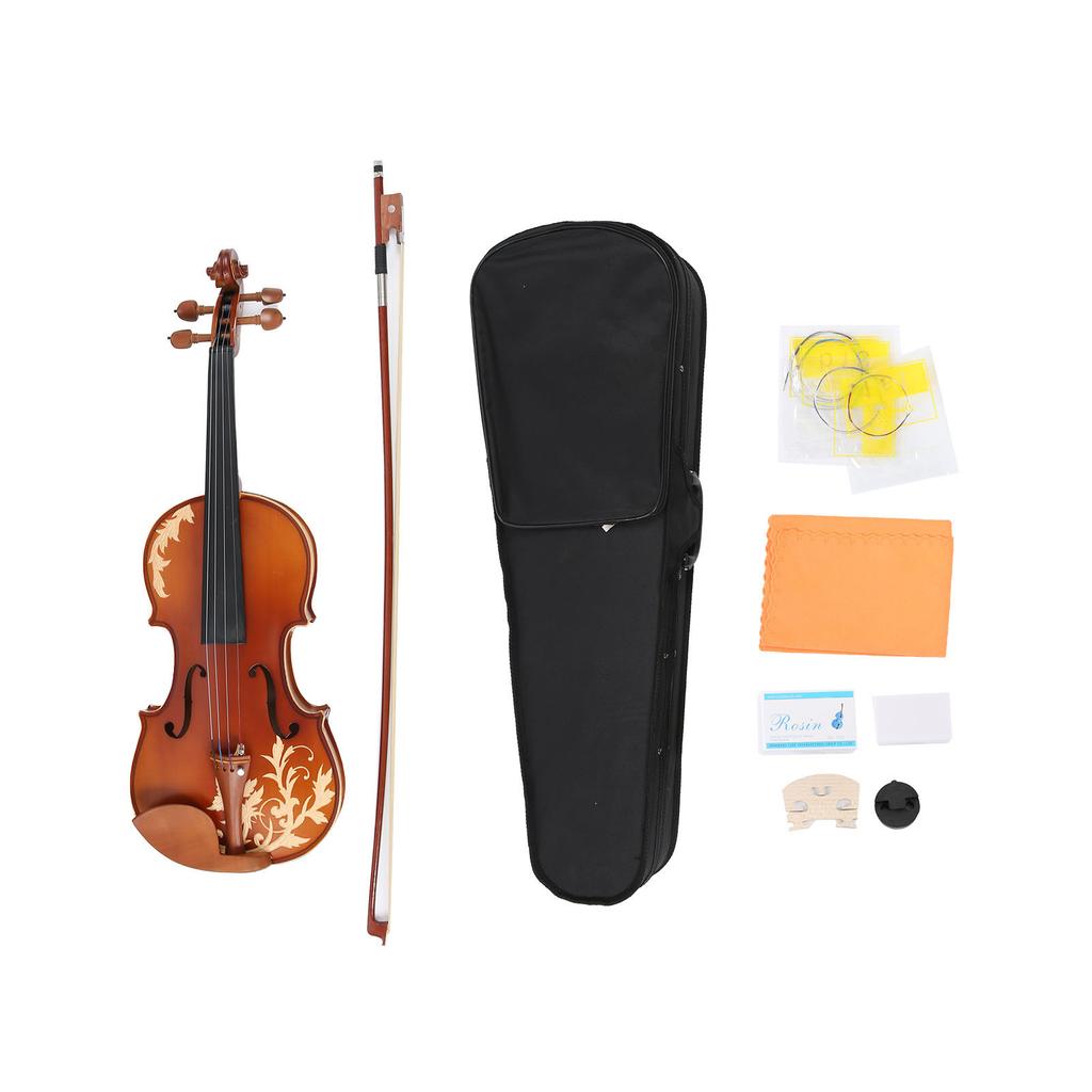 Скрипичный набор из дерева с резным цветком, смычок, струны, канифоль, салфетка, подставка, футляр 4/4 AV-608