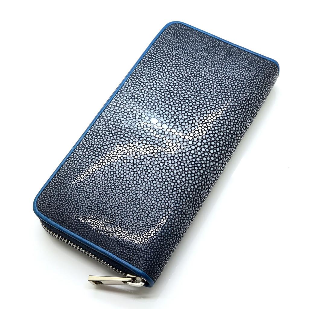 [Revetta] Длинный кошелек на молнии из кожи ската, Галюшат, Скат, Темно-синий, Мужской, Натуральная кожа [116stw]