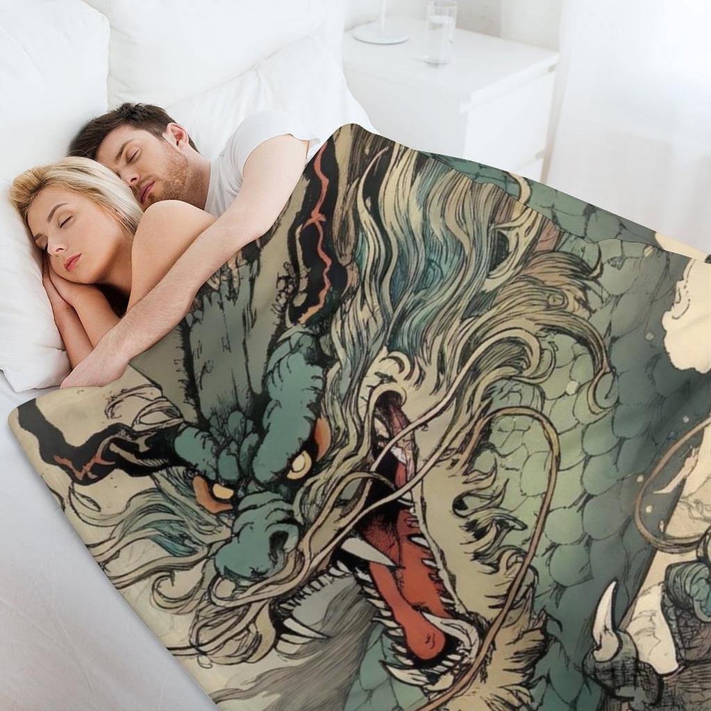 Fierce Blue Dragon Throw Blanket Hairy warm for winter Shaggy Stuffeds Blankets