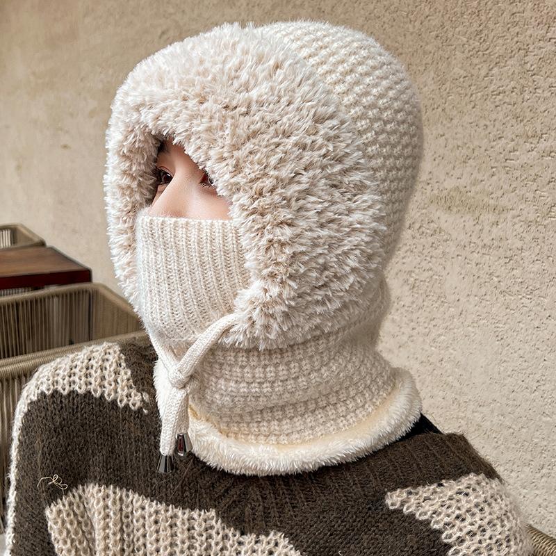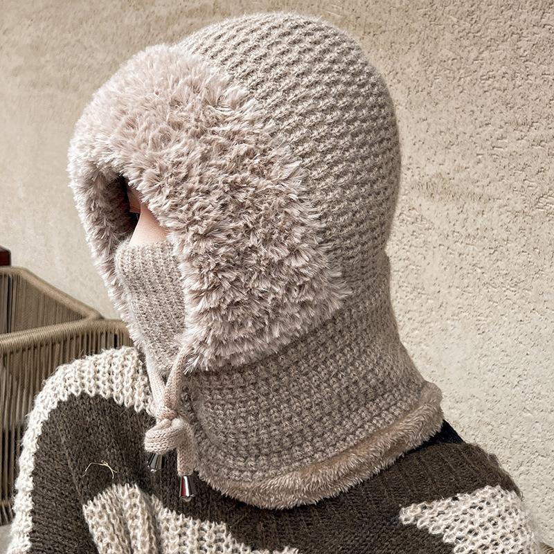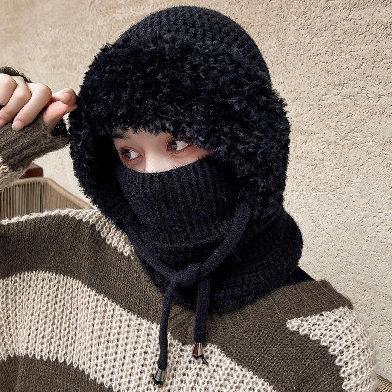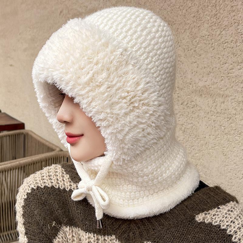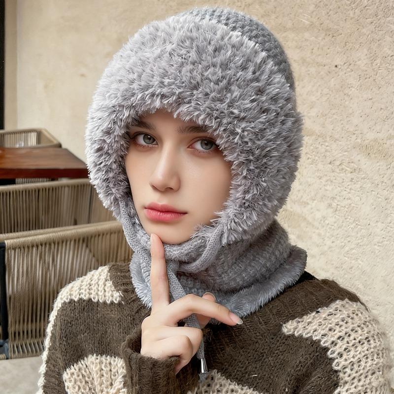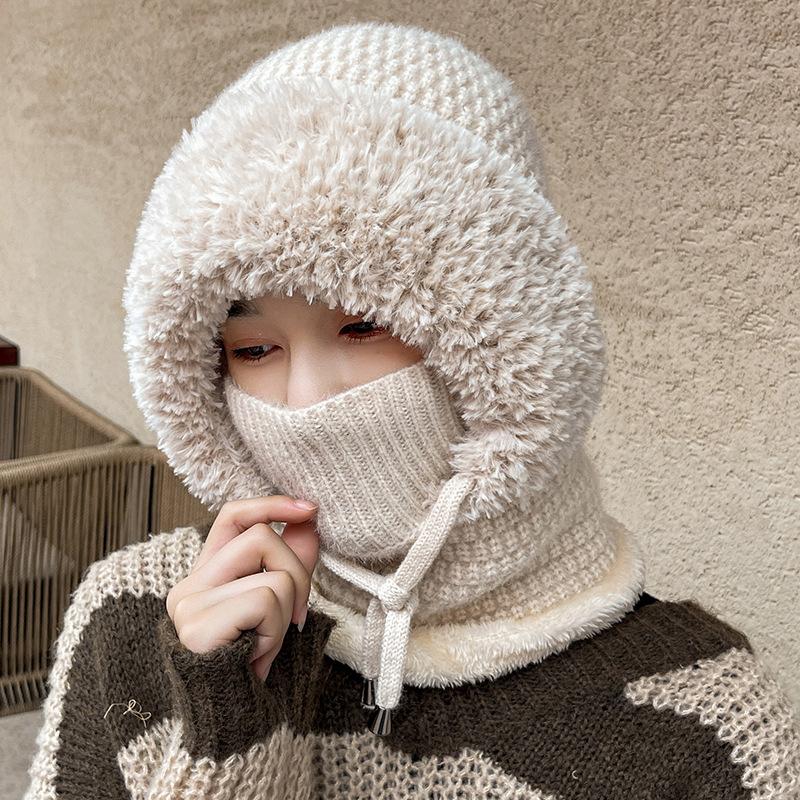 Зимний теплый вязаный комплект шапка-шарф с флисовой подкладкой, непродуваемые наушники для женщин, для активного отдыха, велоспорта, ветрозащитная многофункциональная шапка-бини